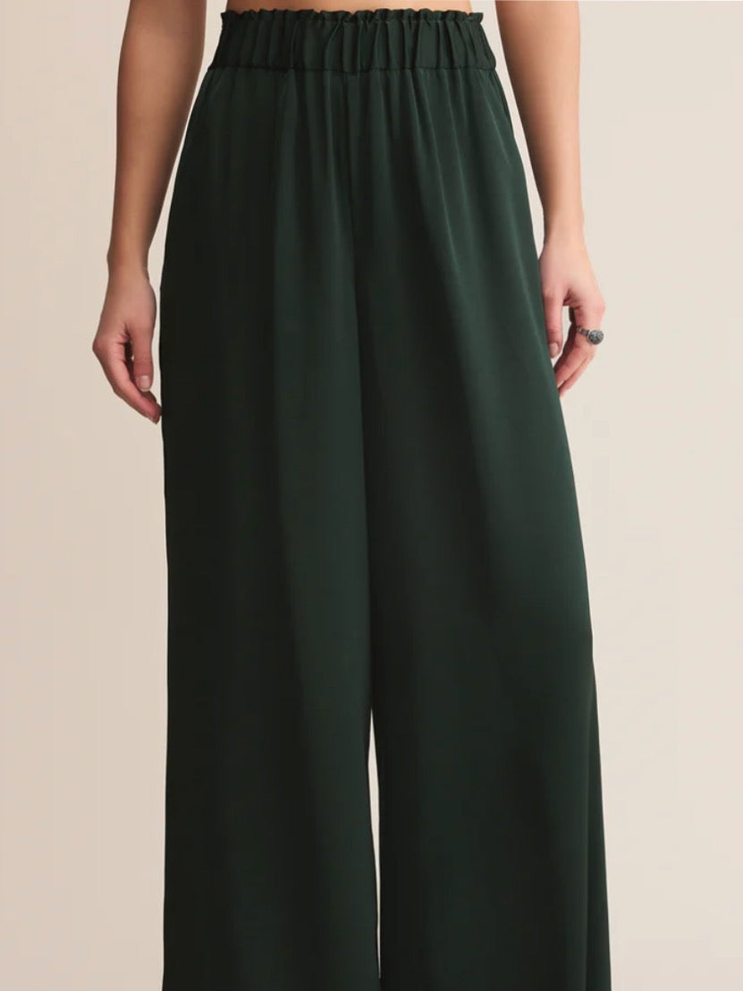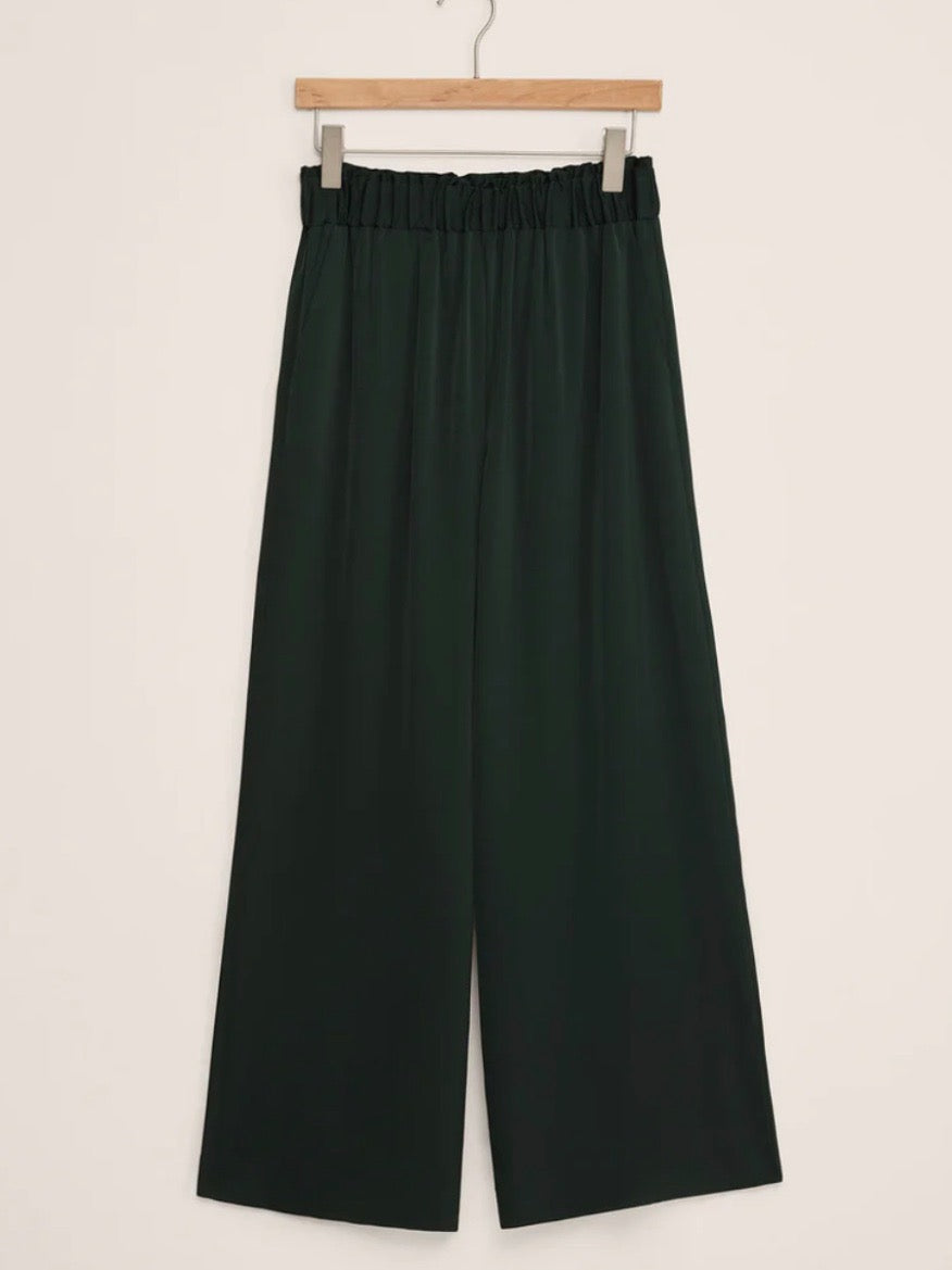 Made from a silky satin fabric with a high rise and wide leg, this pant delivers easy sophistication in a fluid, relaxed design. An elastic waist and subtle sheen make it an instant favorite for dressed-up days or cozy nights in.