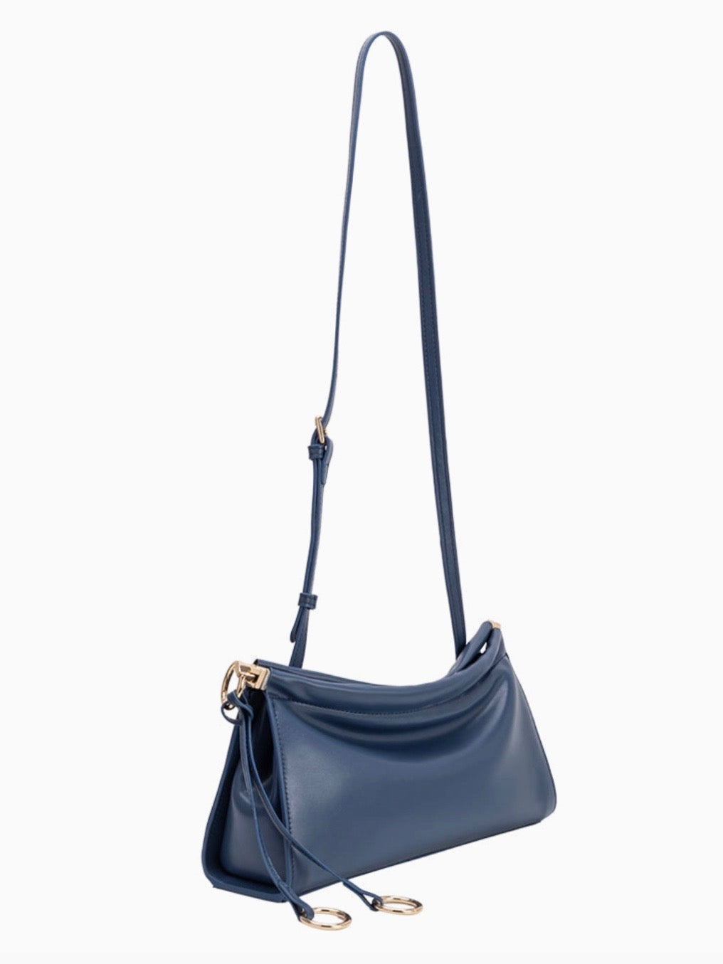 The Amaya shoulder bag features a sleek curved, folded silhouette and decorative strap with gold-tone rings. Perfectly sized for your essentials, this versatile bag can be worn over the shoulder or carried as a chic clutch for day or night.