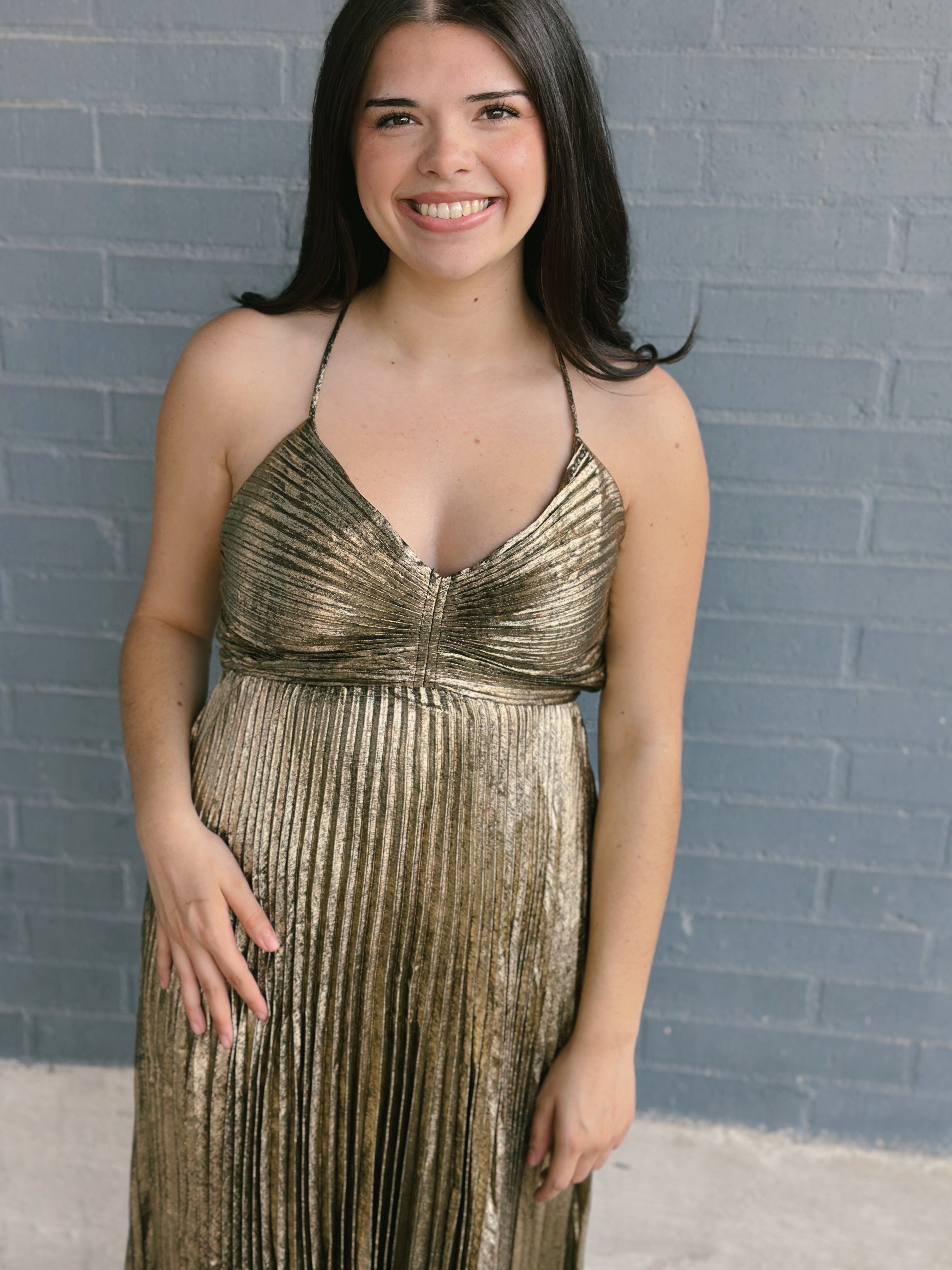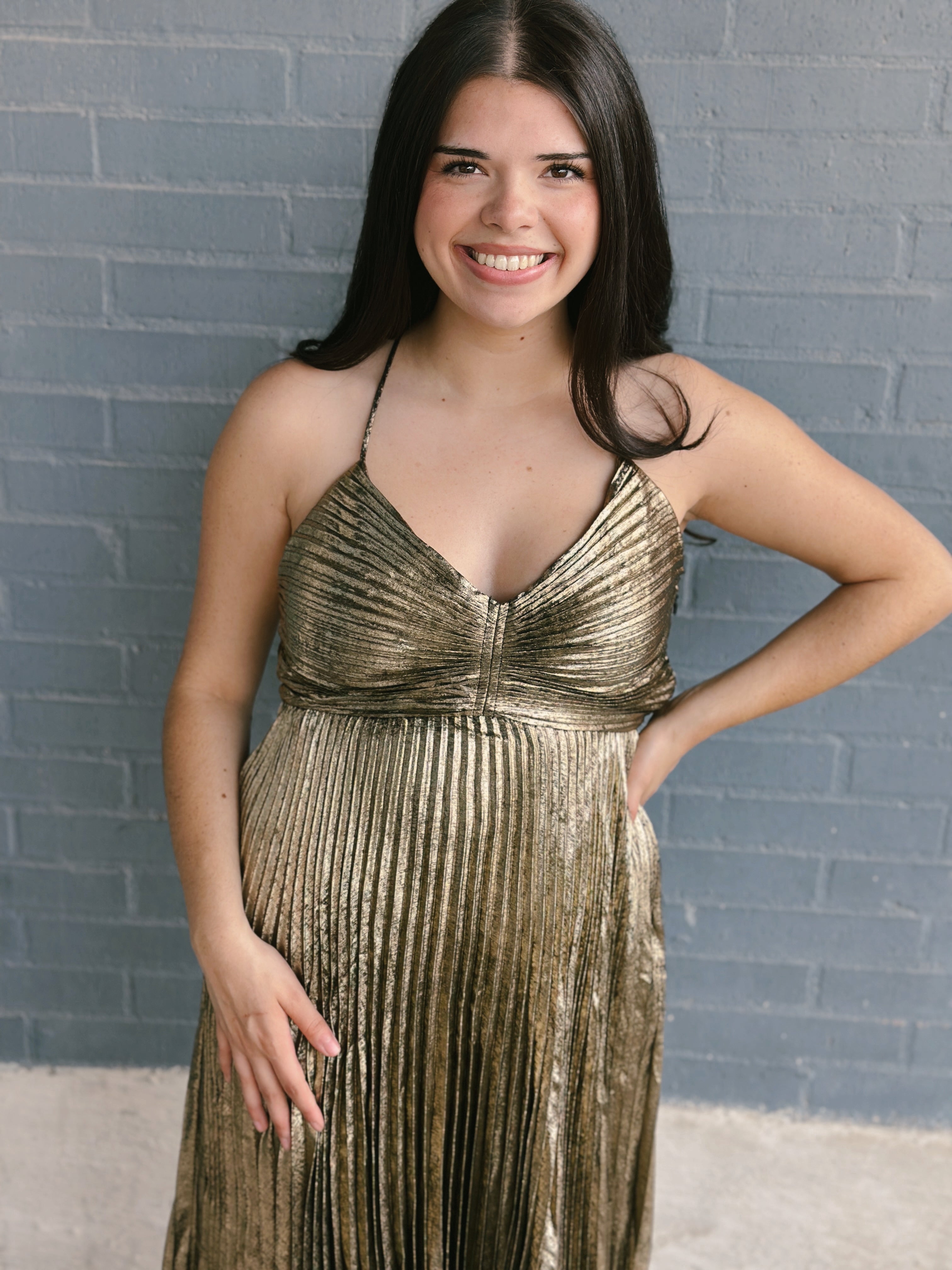 Allover pleats give graceful movement to this midi dress that is the perfect pick for weddings, celebrations, and everything in between — especially when you want to feel your best.