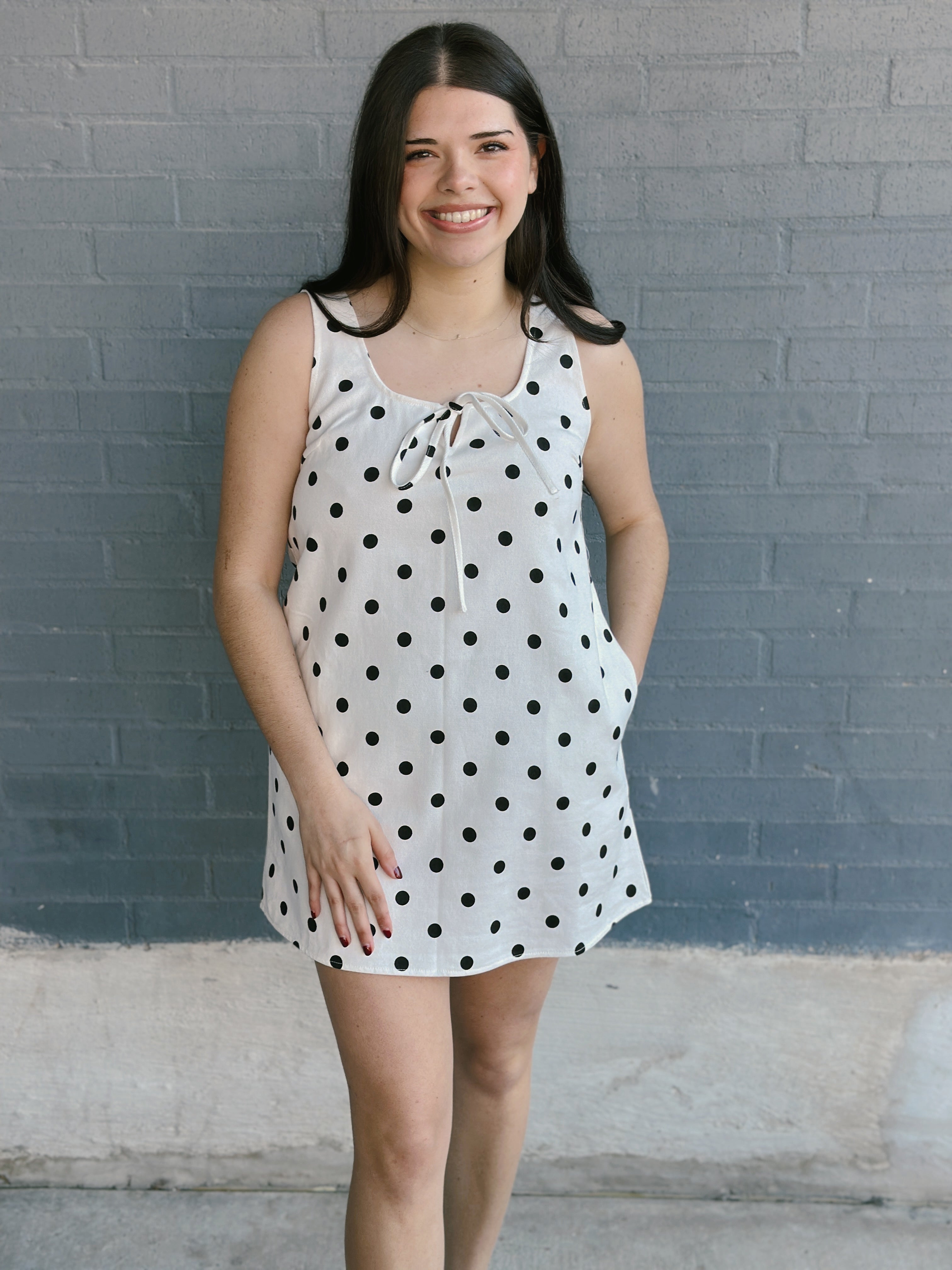 Meet your new go-to dress! This charming mini shift dress features an adorable polka dot pattern that brings instant fun to any outfit. The square neckline adds a modern, flattering touch that works beautifully for casual days or dressed-up occasions.