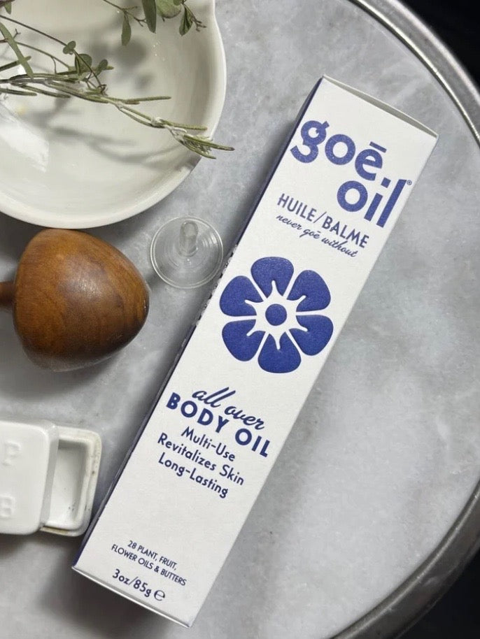 Lighter than a body butter, longer lasting than a moisturizer, Goē Oil absorbs quickly. Use sparingly, as a little goes a long way!