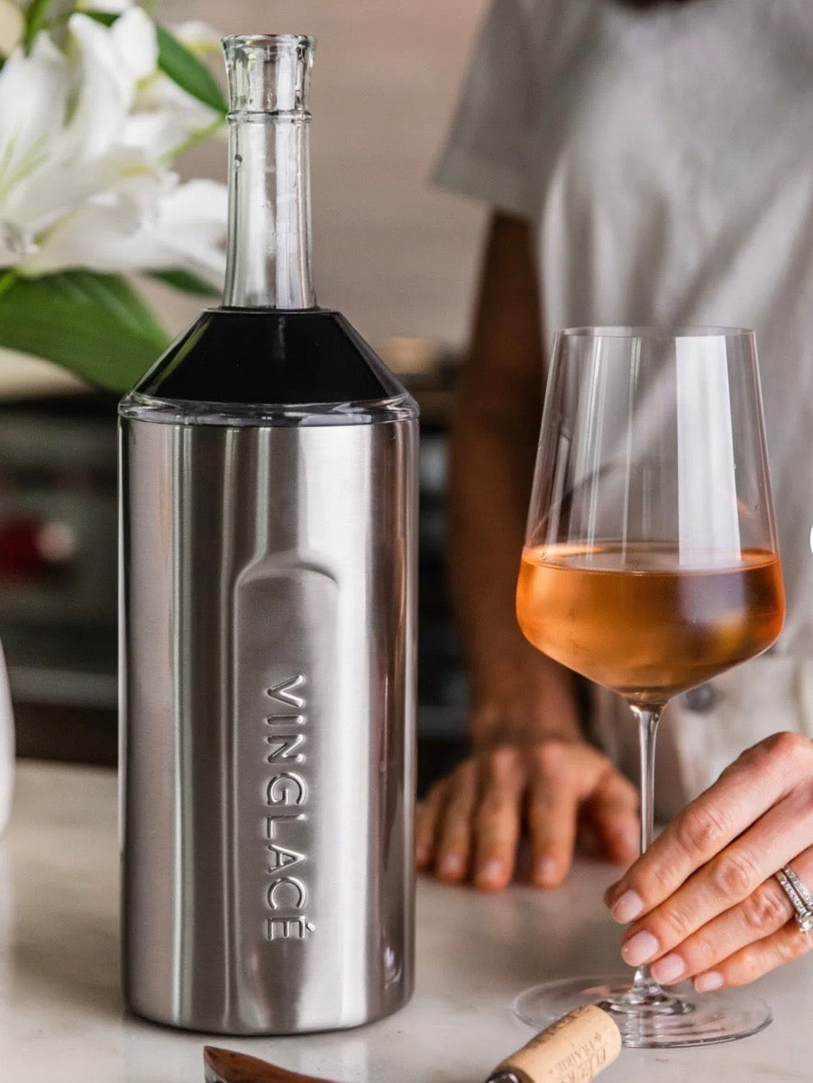 The Vinglacé wine & champagne chiller keeps your bottle cold without ice. It's made of stainless steel and vacuum insulated, so you don't have to worry about condensation or warm wine. Lightweight and easy to carry, you can enjoy your wine & champagne anywhere you go. All Vinglacé products come in a beautiful gift box.