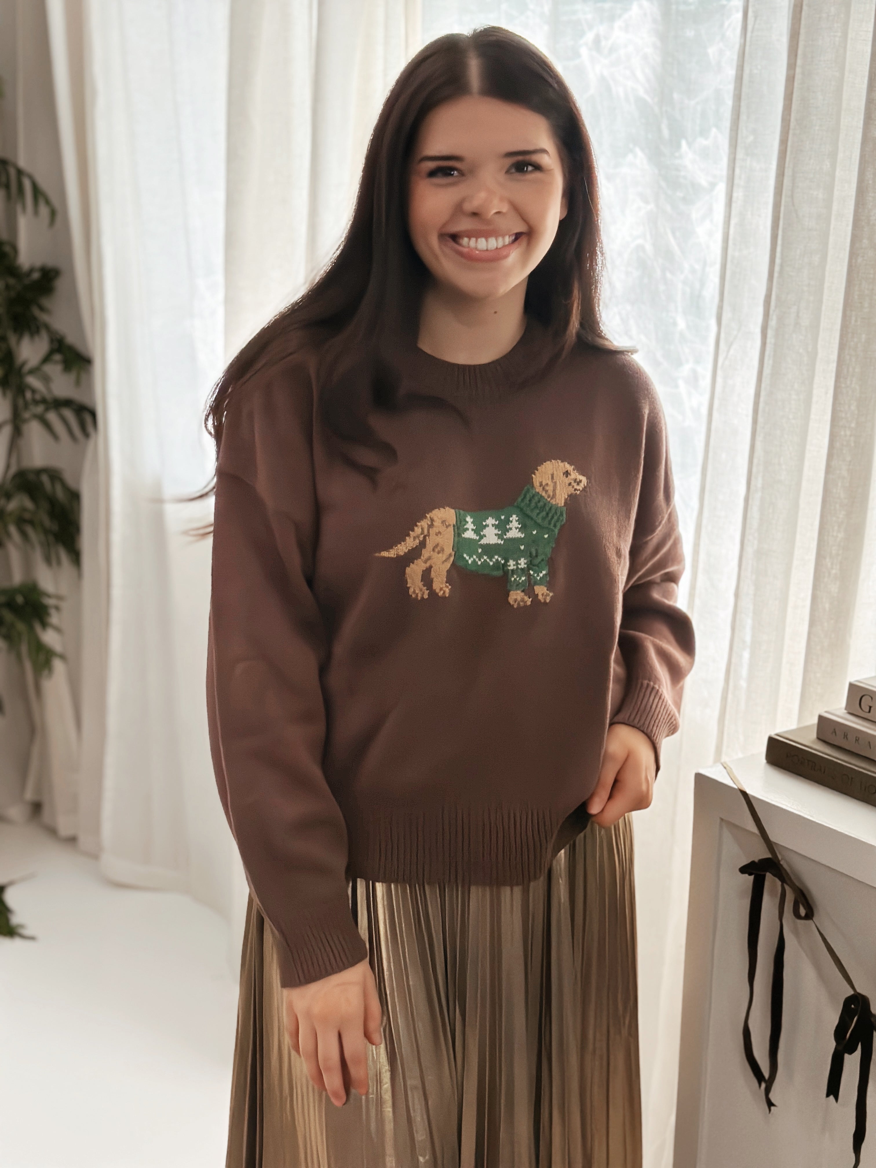 Emily is wearing a size medium.
