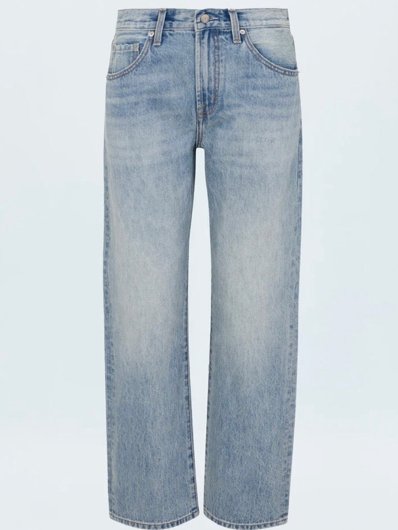 The best-selling jean that understands proportions. Lexi sits at the perfect mid-rise with our signature bowed straight leg, a subtle curve at the knee that creates dimension without effort. Finished with a 29" inseam, the sculpted silhouette tapers to a cropped ankle with a clean hem. Crafted from our rigid denim in Bowie, a light wash with lived-in fading.