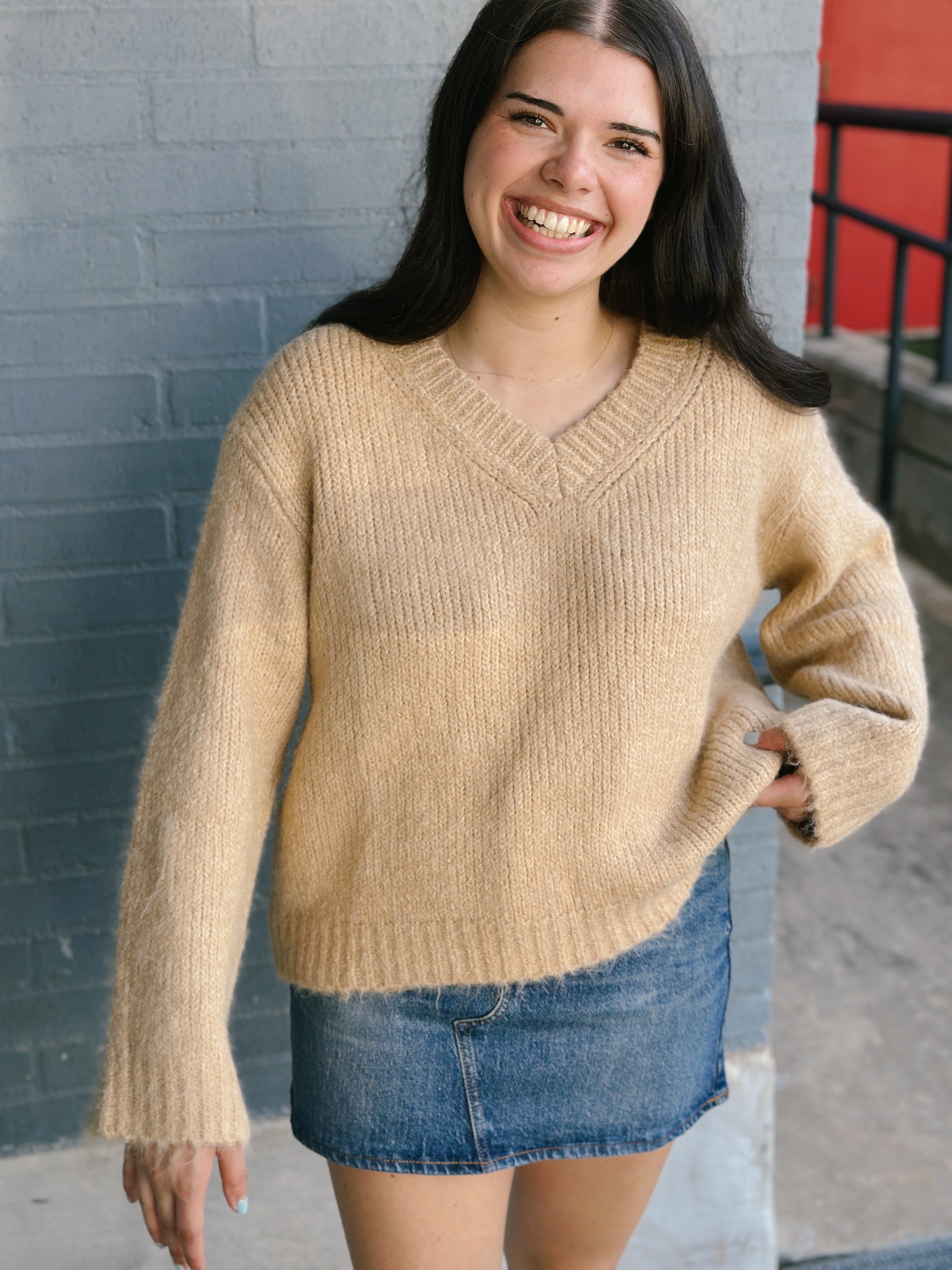 Cozy up in the Townie V-Neck Sweater, your new go-to for chilly days. This chunky knit wraps you in warmth while its playful v-neck invites just the right amount of flair. Perfect for layering or rocking solo, it brings comfy charm to any outfit with ease.