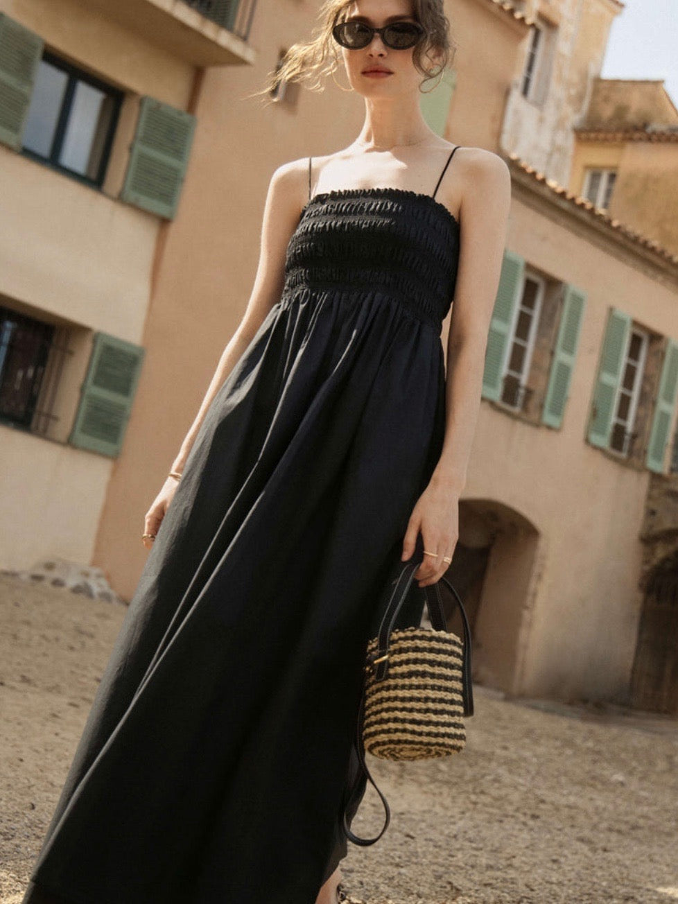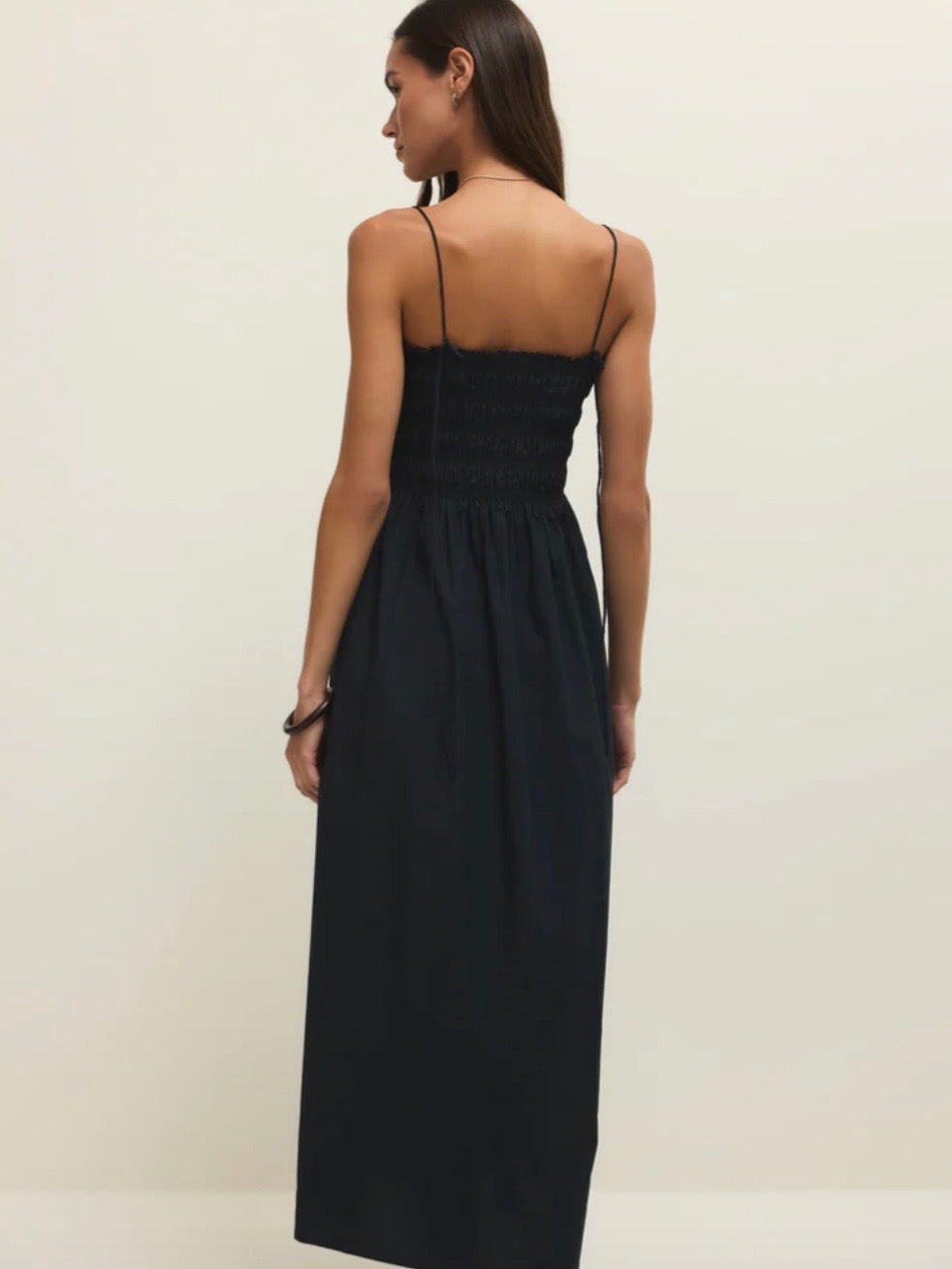 Made from lightweight cotton poplin, this midi dress features a fully smocked bodice that fits close to the body before flowing into a relaxed skirt. The square neckline and side pockets make it as practical as it is pretty.