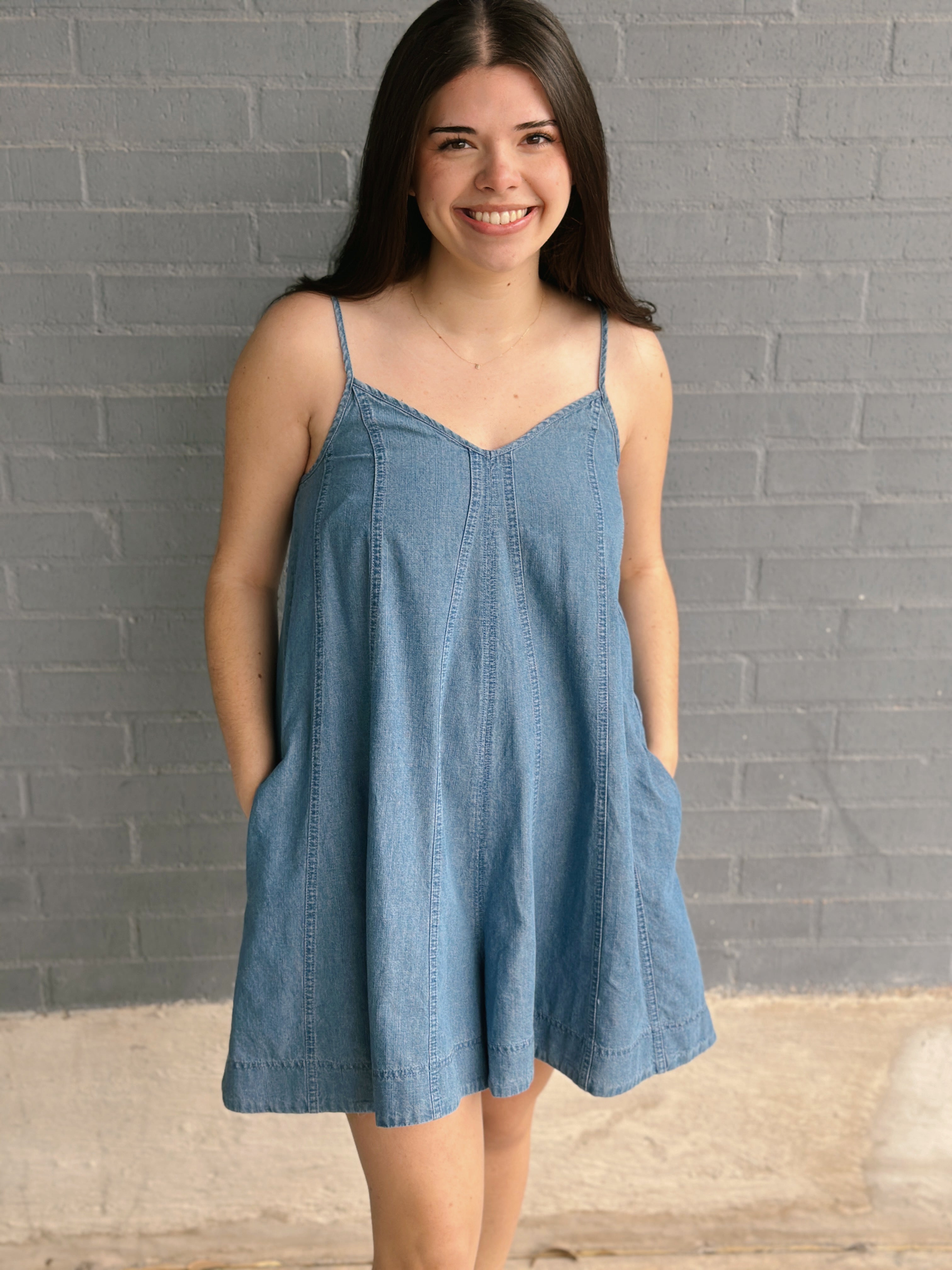 Embrace effortless spring style in this lightweight denim romper that's perfect for warm-weather adventures. Featuring adjustable straps that let you customize the fit, this playful piece transitions seamlessly from casual outings to weekend getaways.