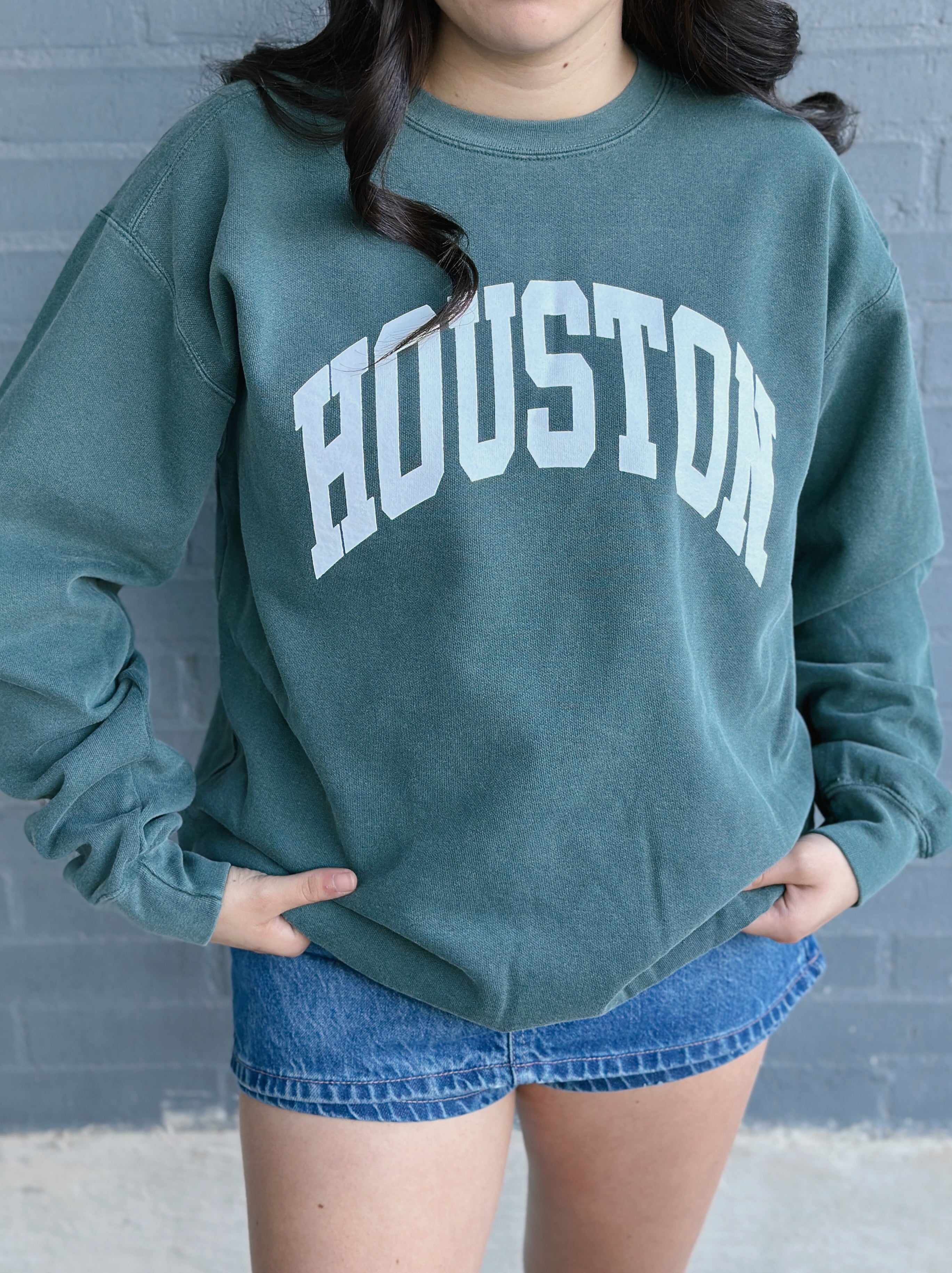 Introducing the Houston Arch Crewneck—your new go-to for cozy vibes with serious style. We've printed the iconic Houston skyline on our beloved comfort colors sweater, crafted from soft-washed, garment-dyed fabric that feels as good as it looks.