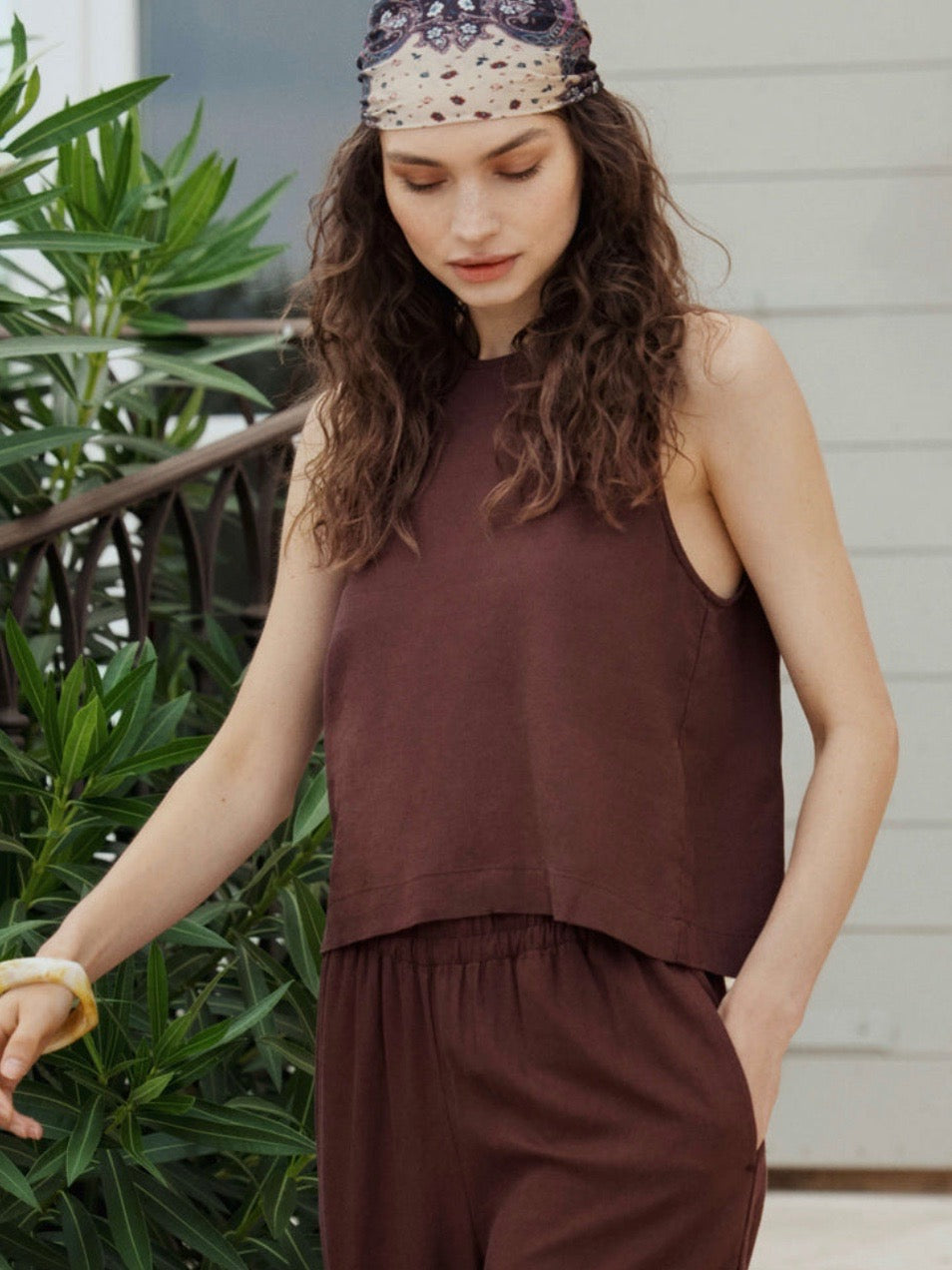 With its relaxed fit and flattering shape, this linen blend tank completes any outfit. Pairs well with the Scout Linen Pant or any of our wide leg denim.