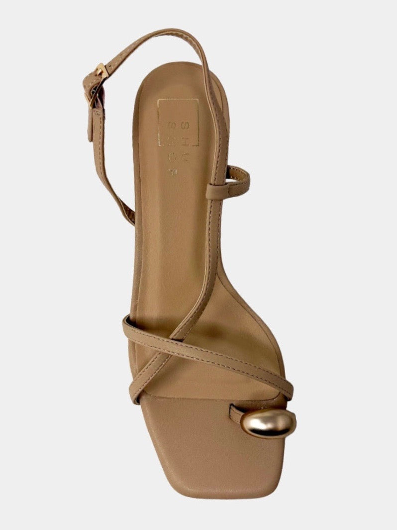 HARPER reimagines the strappy sandal with a playful twist. Featuring ultra-minimal straps, a toe ring with metallic bead accent, and a sleek mini heel, this silhouette blends bold personality with modern elegance. Lightweight and surprisingly comfortable, it’s your plus-one for dinner dates, summer weddings, and everything in between.