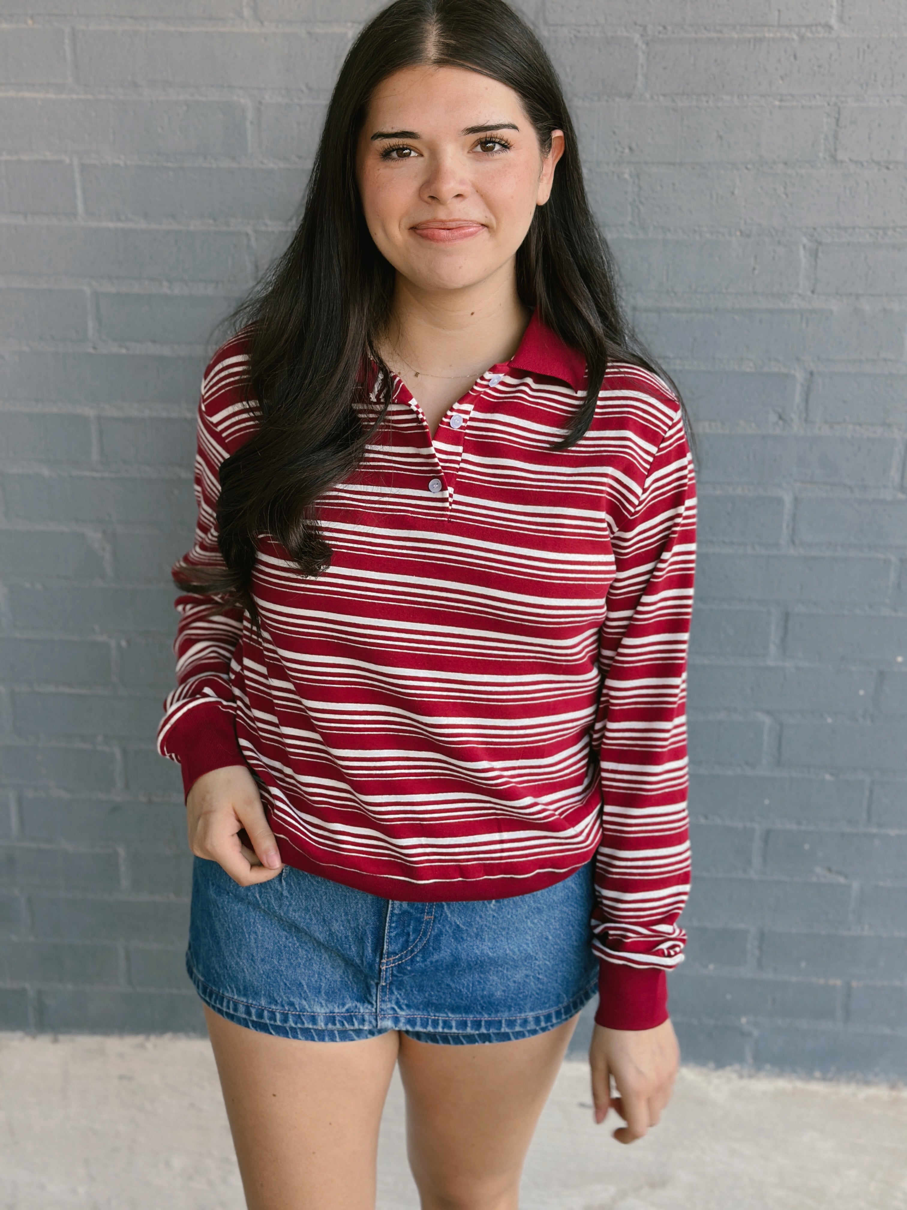 A modern twist on a timeless classic. This striped polo long sleeve is crafted in a soft cotton-spandex blend that moves with you while keeping its shape.