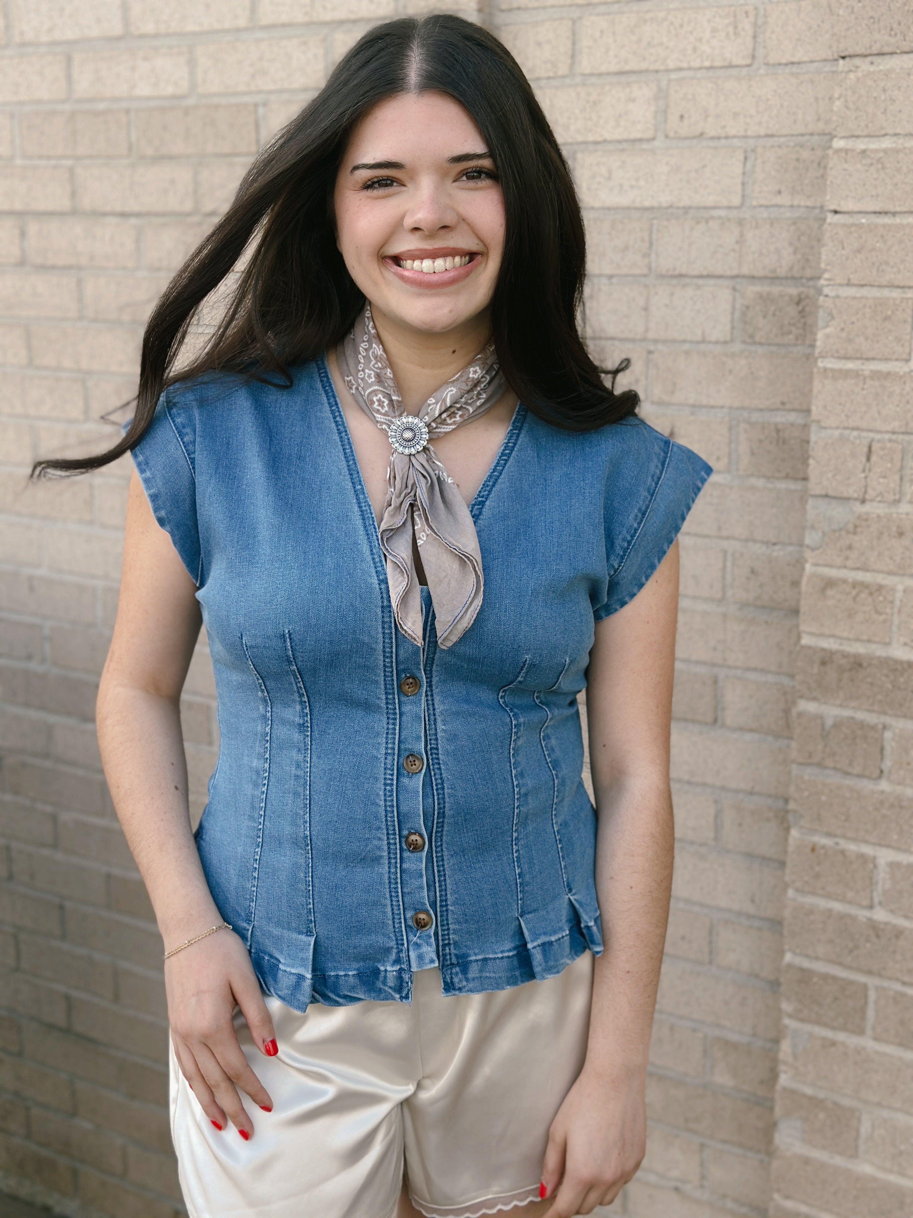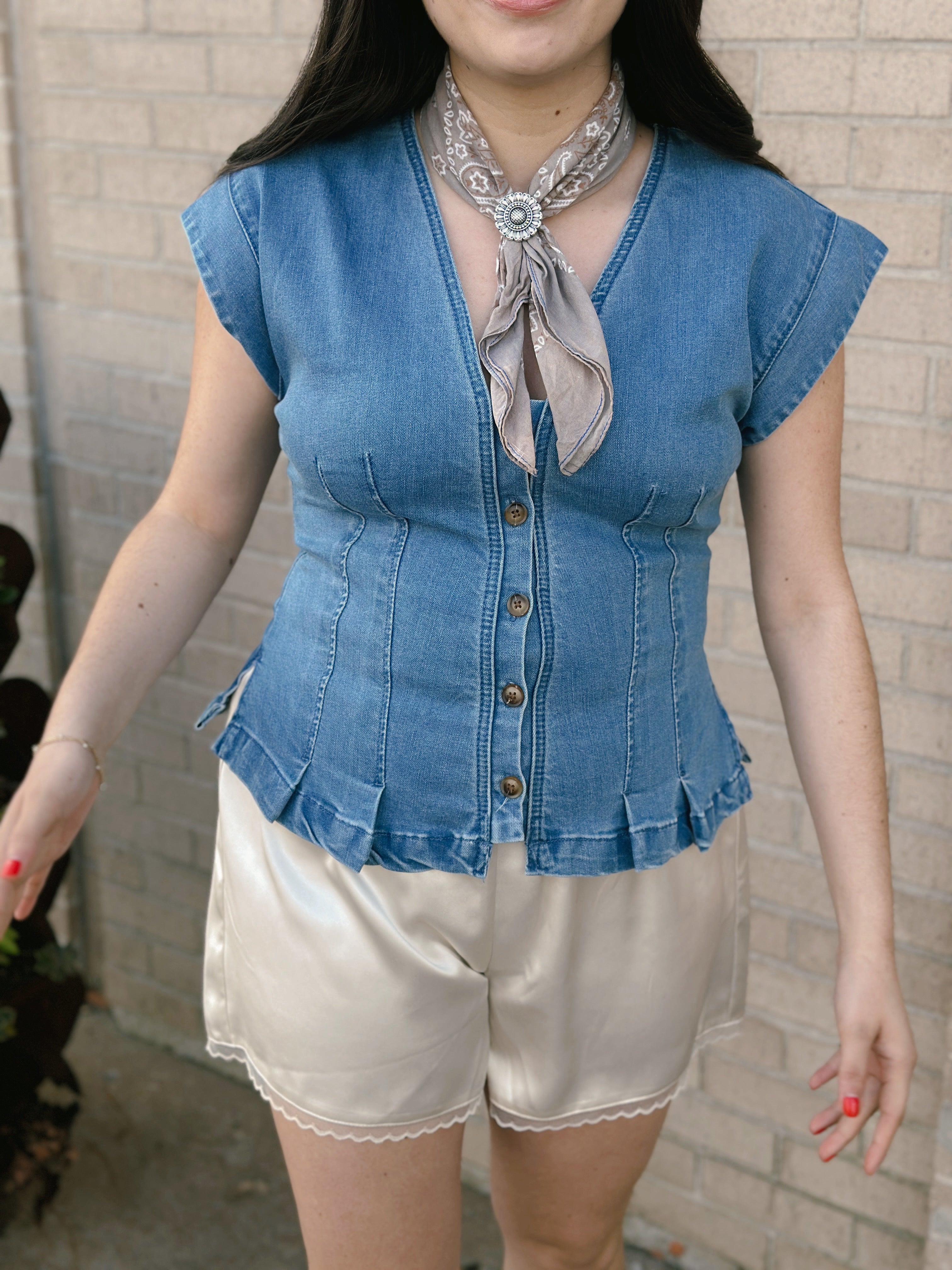 Midnight Oil Top features a sleek fitted silhouette crafted from quality denim that moves with you throughout the day. The delicate ruffle hem adds a touch of feminine charm and movement, making it versatile enough to dress up or down.