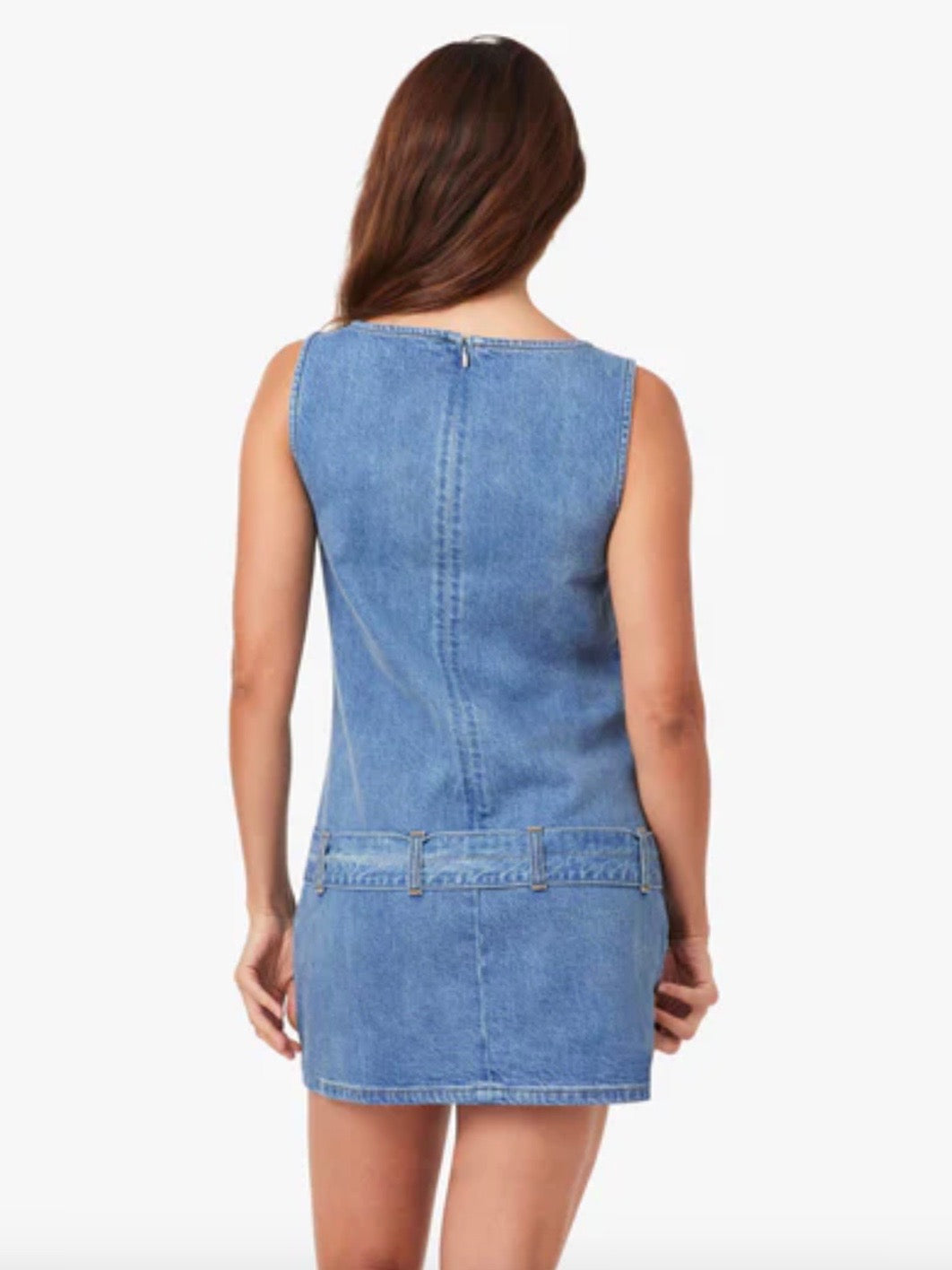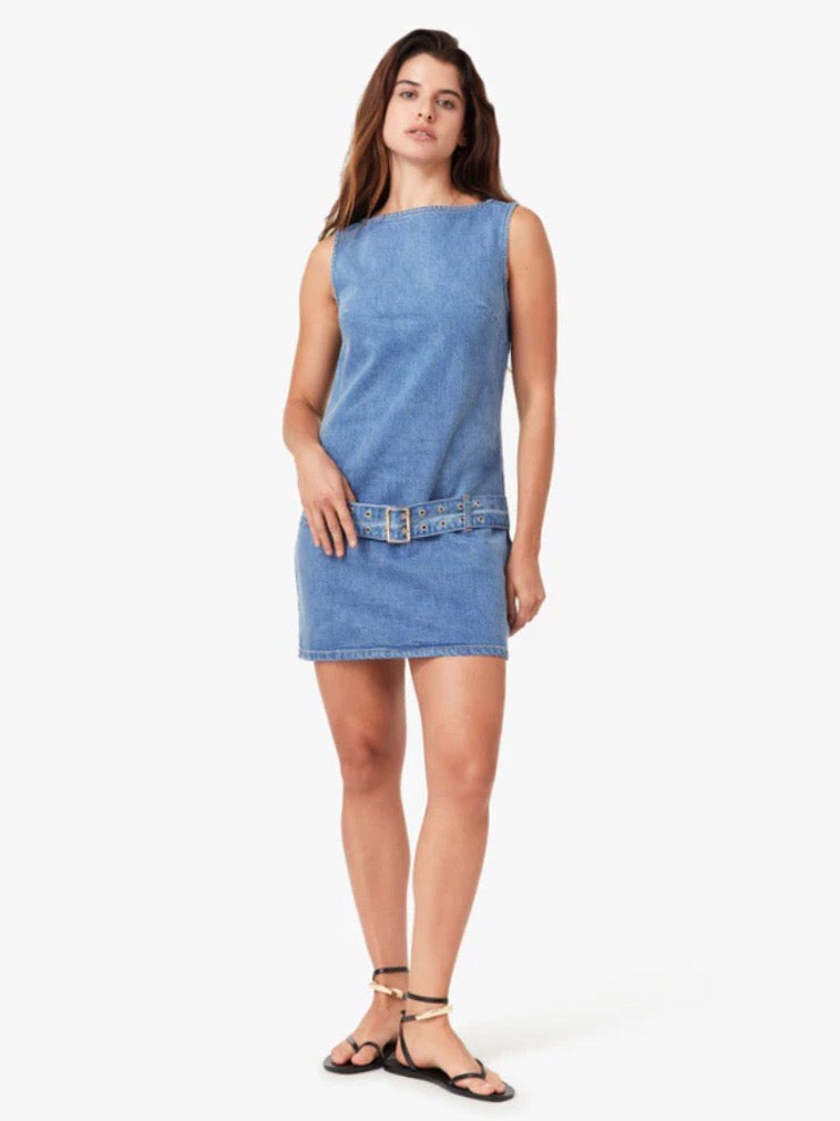 Minimal, but never boring. This sleeveless denim mini features a belt so you can switch up the shape depending on your mood. Clean lines, easy attitude, and just the right amount of structure