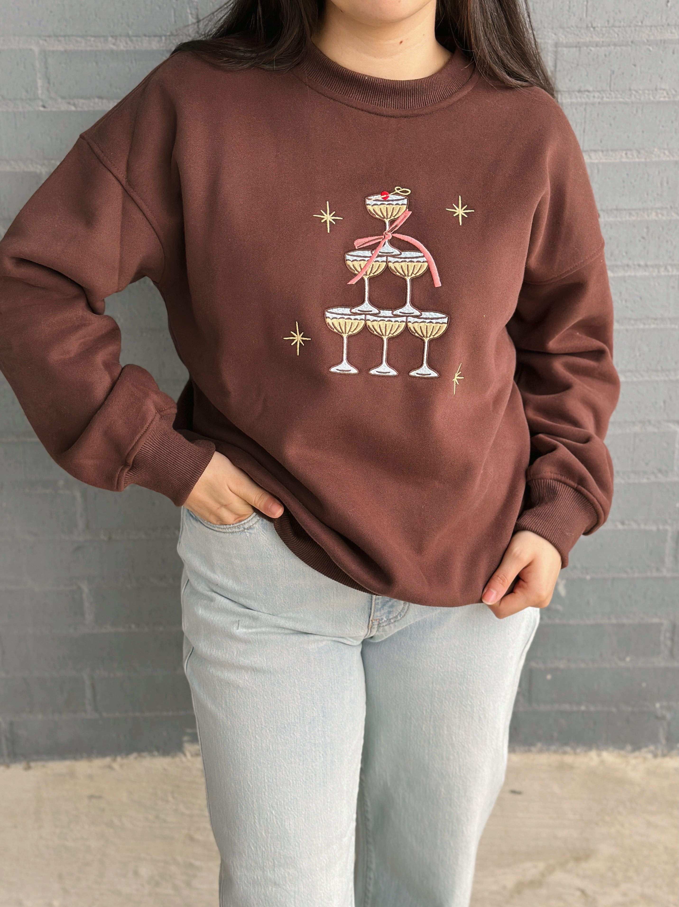 Raise a glass to good vibes with this fun Champagne Tower Sweatshirt! Featuring a champagne tower graphic, it's the perfect piece for celebrating life's bubbly moments—whether you're planning a bachelorette bash, girls' night out, or just want to spread some sparkly energy.