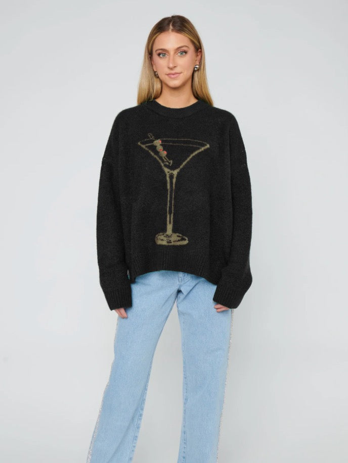 Cozy up in style with the Settle In Dirty Martini Sweater. This oversized knit features a fun martini graphic, perfect for lounging or making a statement at gatherings. Soft and roomy, it’s your go-to sweater for relaxing evenings or casual outings with a playful twist. Cheers to comfort and charm!