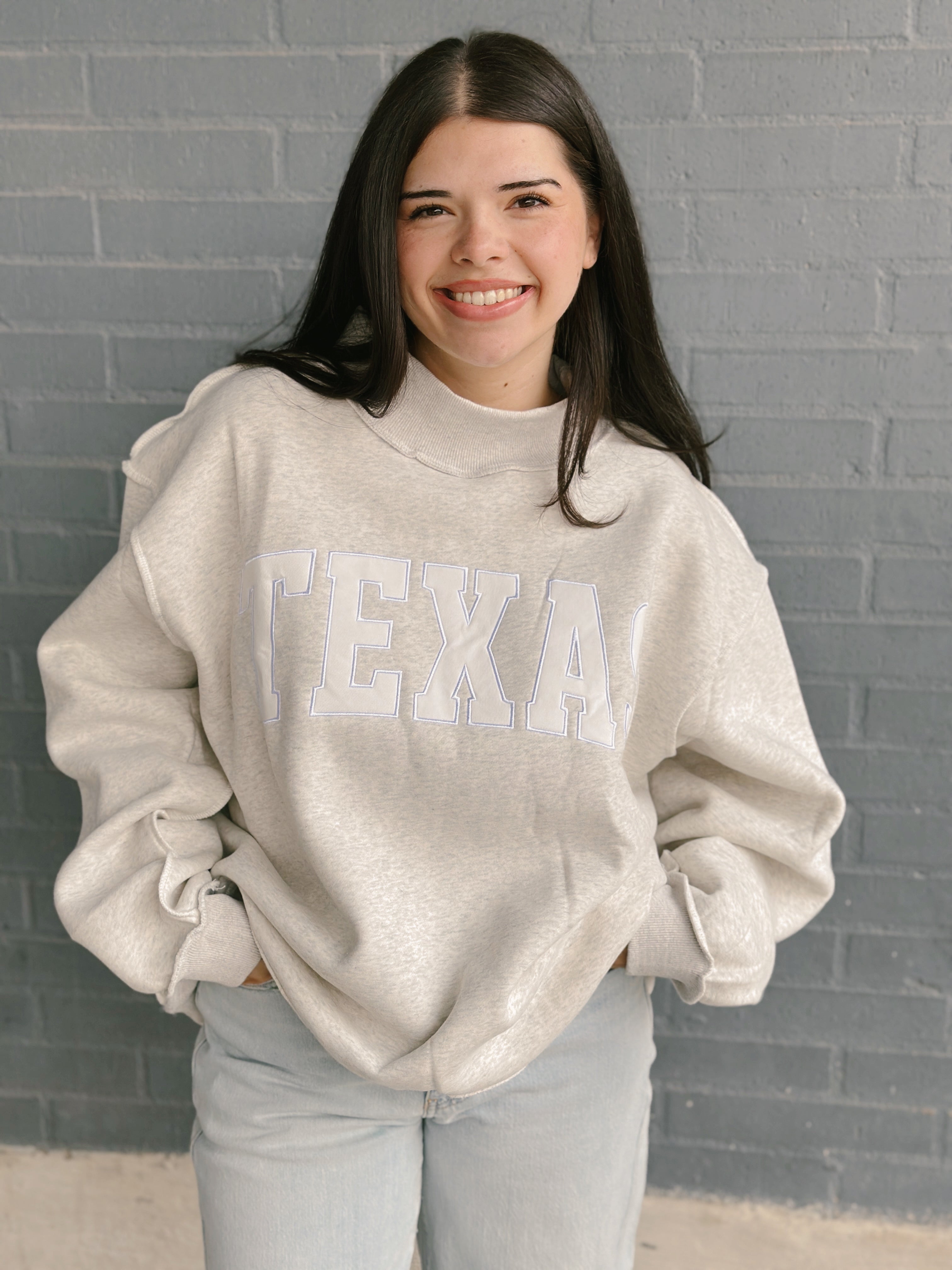 Wrap yourself in pure comfort with our Texas Mock Neck Sweatshirt—the ultimate cozy essential. Featuring a soft, luxurious fleece that feels like a warm hug, this oversized beauty boasts a trendy drop shoulder and long sleeves perfect for layering.
