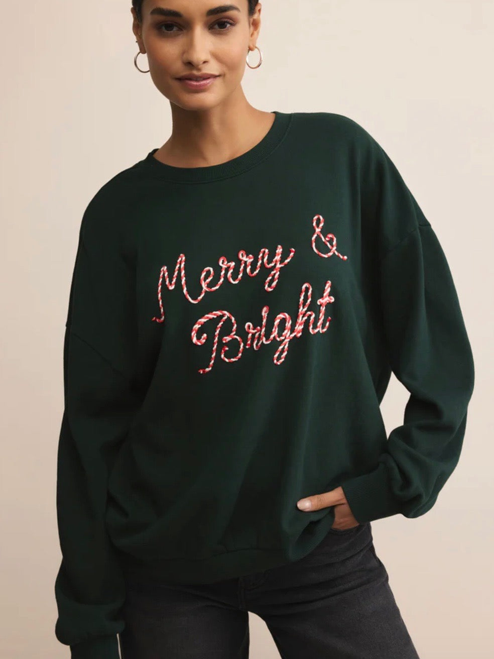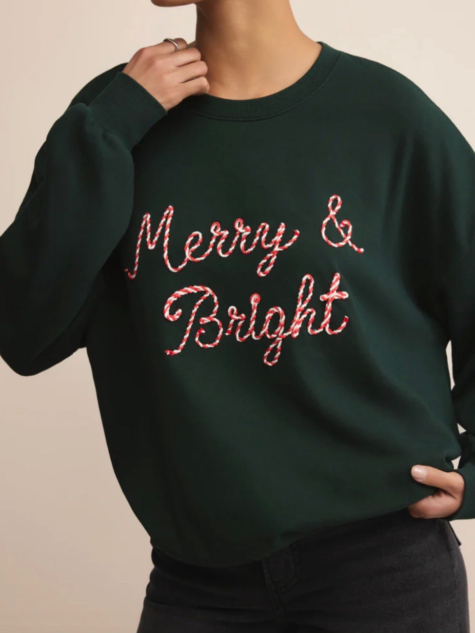 Designed in brushed cotton fleece with an oversized fit, this sweatshirt feels both comfortable and polished. The raised cord applique “Bright” graphic brings a playful touch of texture, making it a standout piece for seasonal styling.