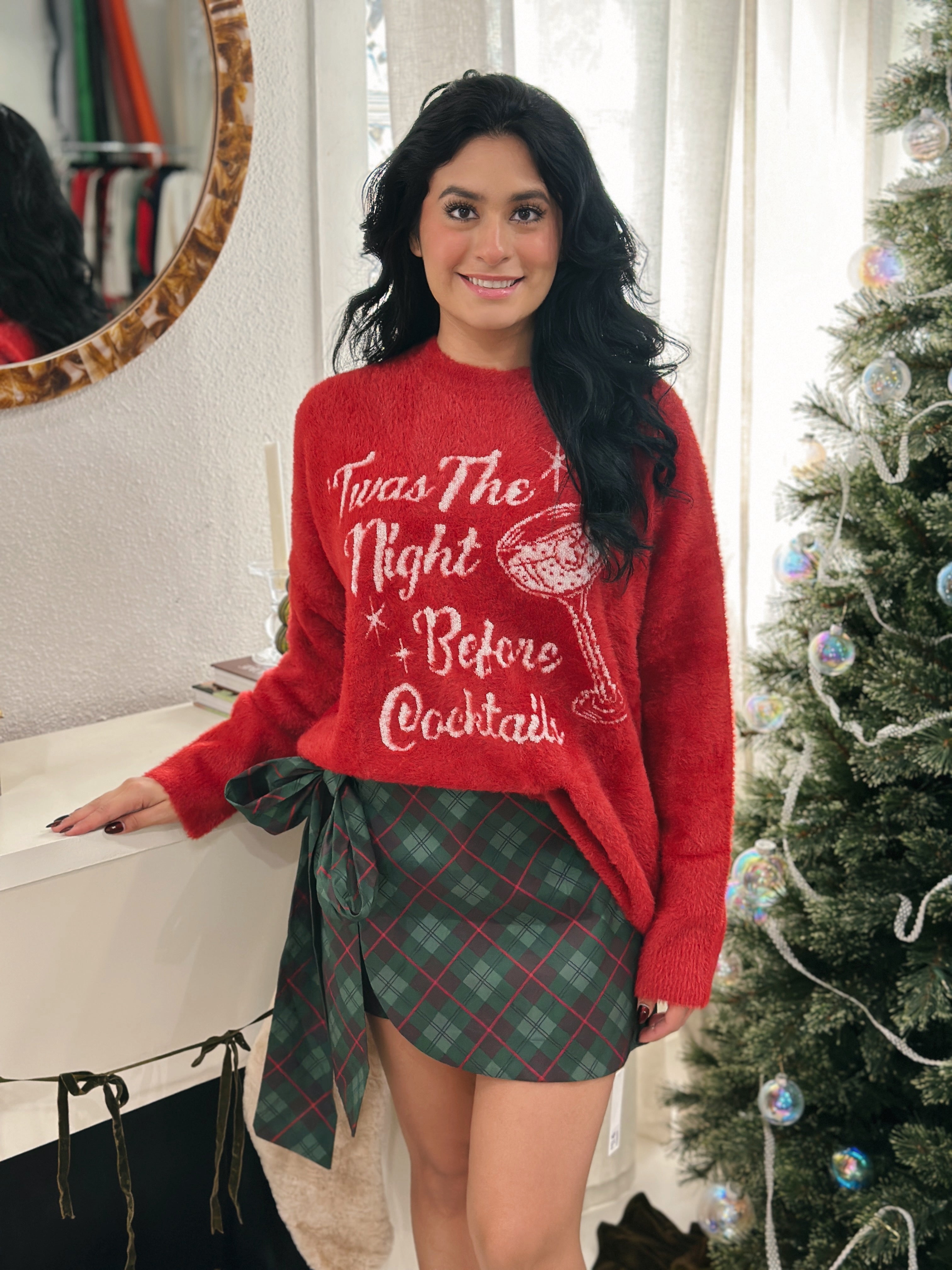 It’s beginning to look a lot like cocktails in this cozy crew sweater featuring a cheeky holiday graphic. The perfect mix of festive and fun, wear it casual with Mumu denim and boots or dress it up with a cute mini and heels for your next holiday happy hour!