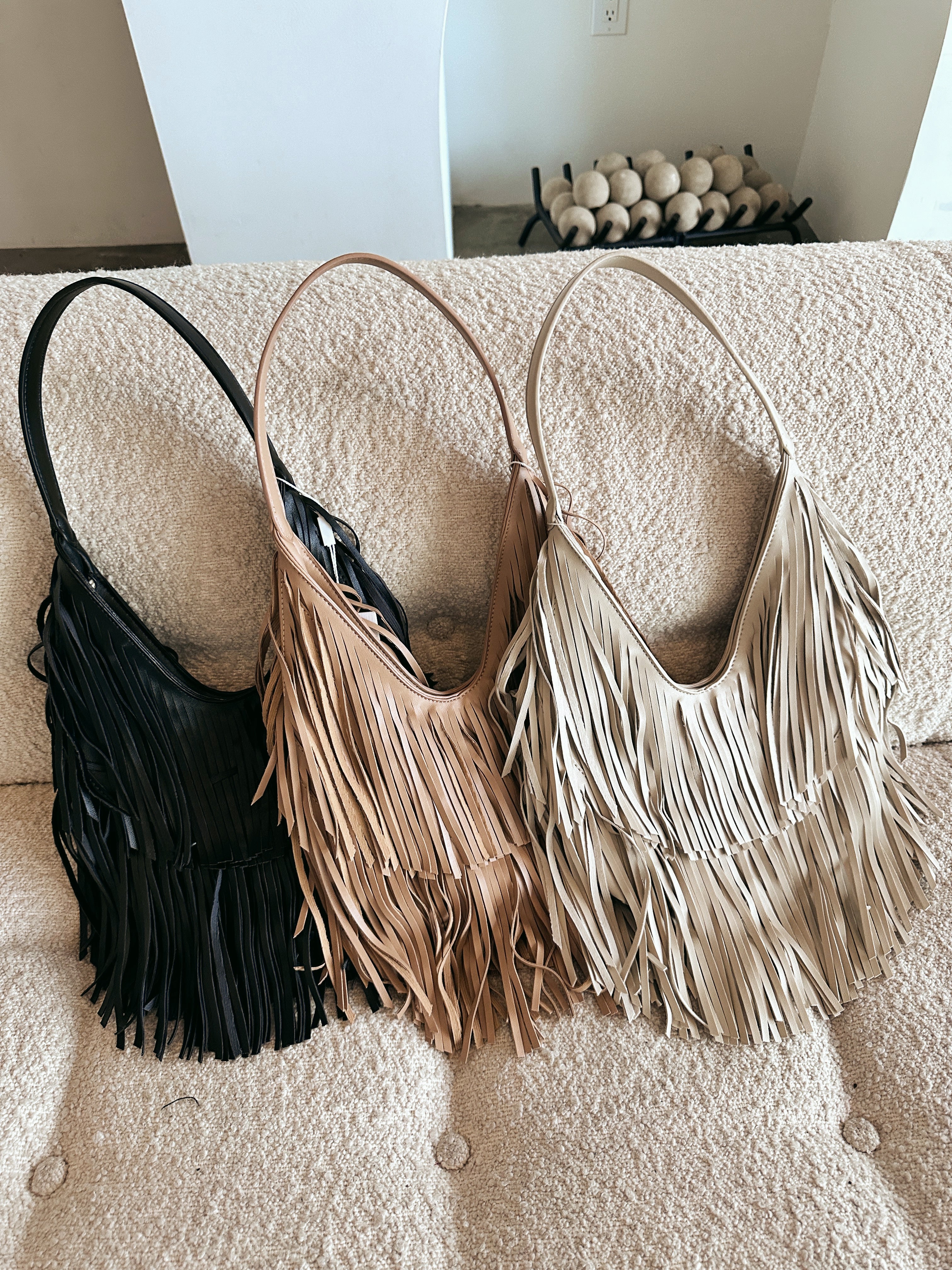 Stevie Hobo — double-tiered fringe, crescent silhouette. Slouchy hobo shoulder bag with sweeping fringe that moves with you, instantly boho-chic. Generous interior fits wallet, phone and daily essentials, single shoulder strap for effortless wear.