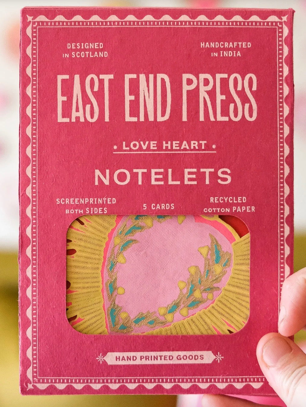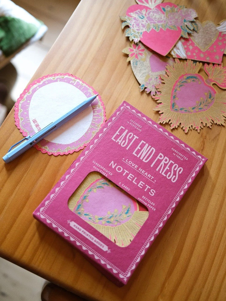 Five gold embellished heart notecards, perfect for spreading the love! Includes illustrated envelopes and a small message panel on the reverse of each card.
