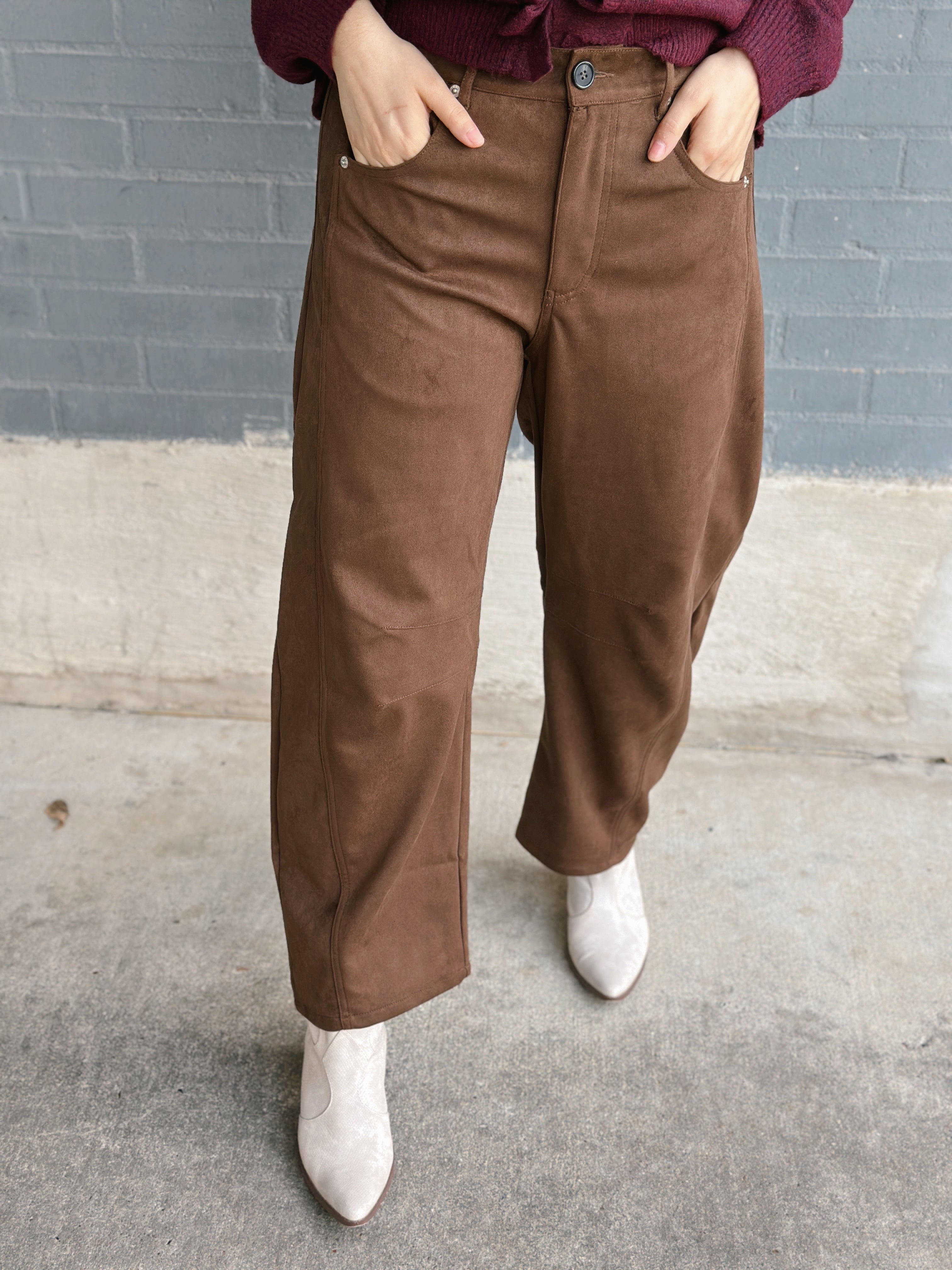 Effortless style meets ultimate comfort with our Nomad Suede Pants. Crafted from soft, supple suede, these pants offer a modern, loose silhouette. Featuring a high-waisted barrel fit, and minimal seam details, they are perfect for elevating any casual ensemble.
